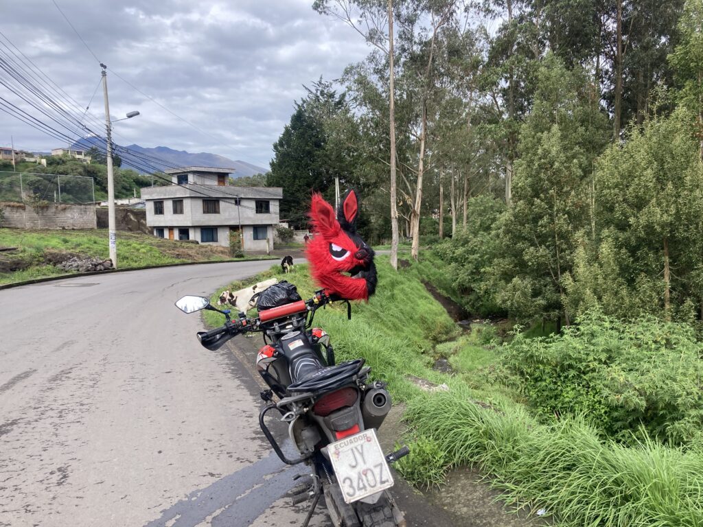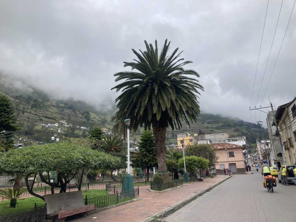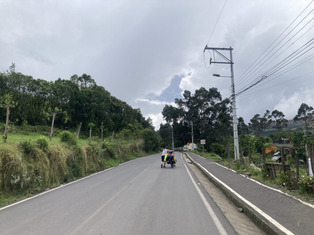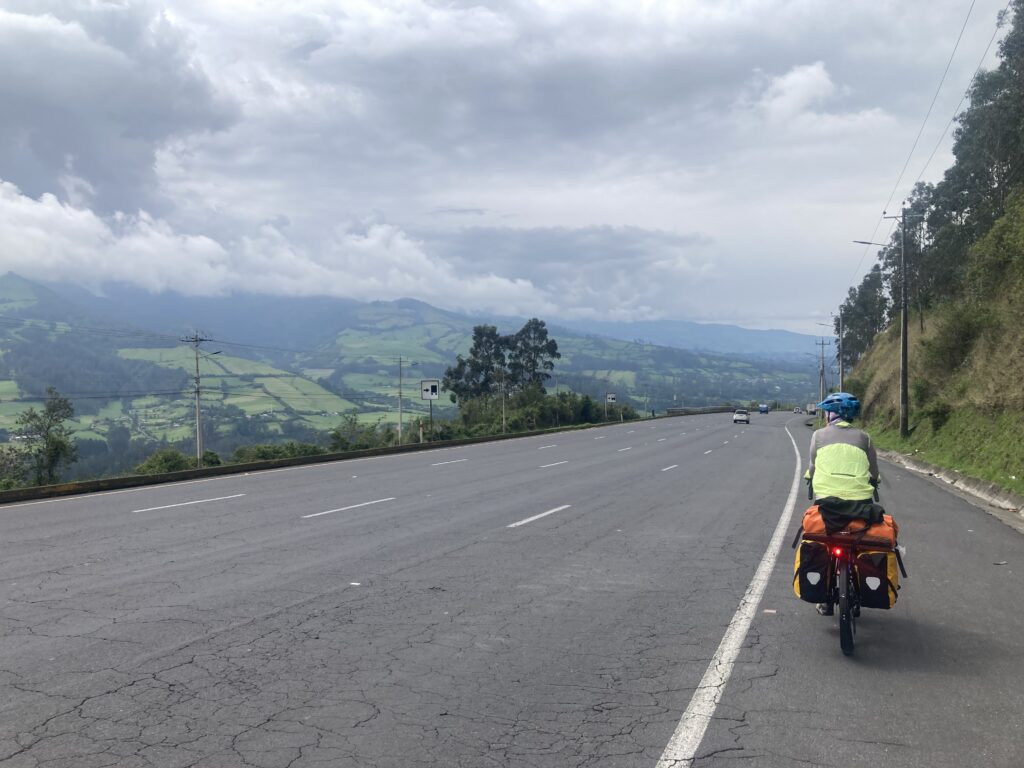 In the garage at our Quito AirBnB, packed and ready to head out.Riding through QuitoHow did we miss seeing this until our last morning in Quito?Old town of Quito before the chaos of the streets started…then we’re too focused to take any pictures. Finally out of Quito with a nice hard shoulder – we can enjoy the scenery