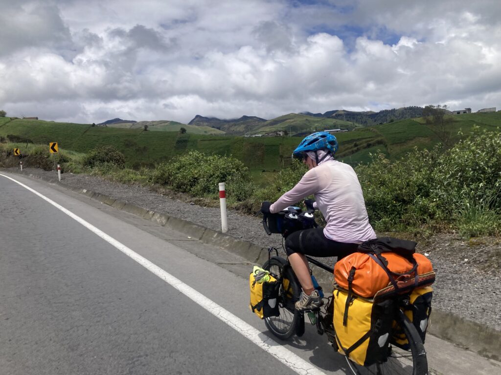 After 4 months off the bicycles, a side trip to the Galapagos & time in Quito to get ready, finally we got on the road again! We departed Quito right after a national holiday (Cuenca Independence Day) and therefore the chaos and traffic was at it’s prime as people had been off for two days. We white-knuckle rode out of Quito for almost 20km dodging busses, trucks, semis, cars, people, carts, deep pot-holes and dogs. Then we cycled for another 20km almost all on the PanAmerican highway quickly being reminded of the traffic and noise but thankful to have good pavement & a hard shoulder.