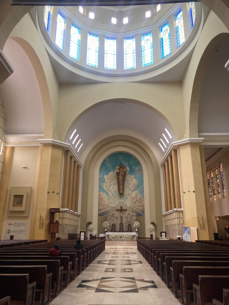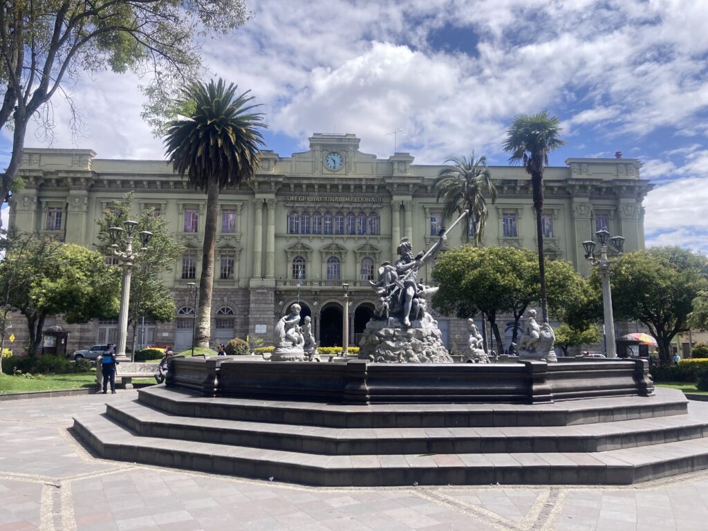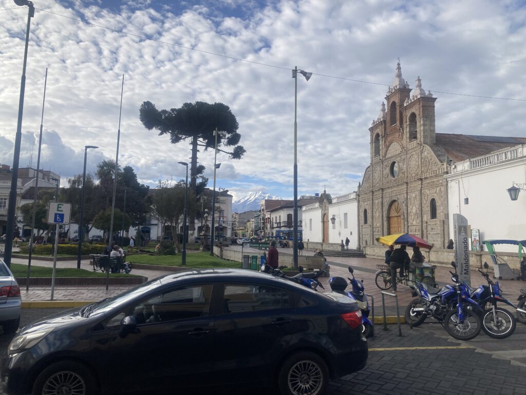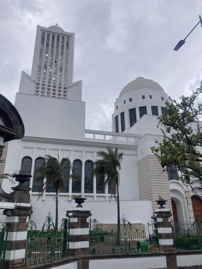 As we are currently in the Pacific Ring of Fire where tectonic plates come together to for subduction zones and therefore volcanoes & earthquakes. Ambato’s most recent earthquake, in 1949, destroyed most of the historical buildings of the city. So the cathedral in Ambato looks different than most churches we have seen in Latin America – it has a modernist flare as a result of it’s 1954 completion.