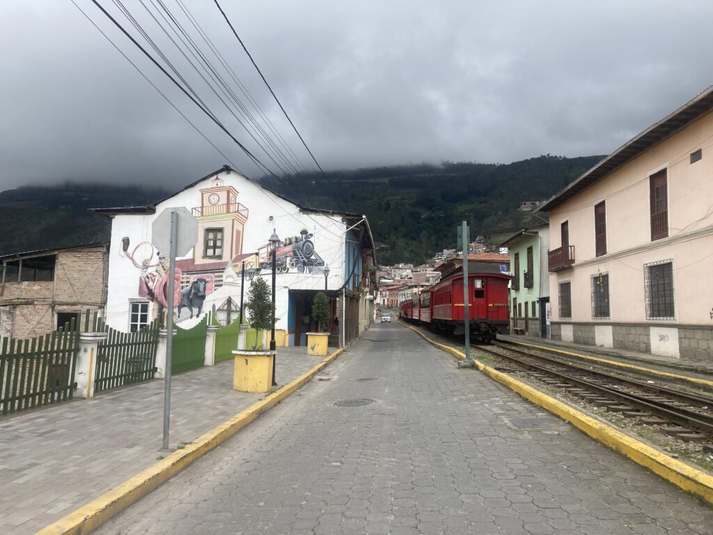 Our next Andean town was Alausi, famous for its train which carries tourists up switchbacked tracks for amazing views of the Andes Mountains. We climbed again at high elevation – it feels like our lungs are getting better used to pedaling at 11,000 feet – no extra stops for Patricia to recover 🙂