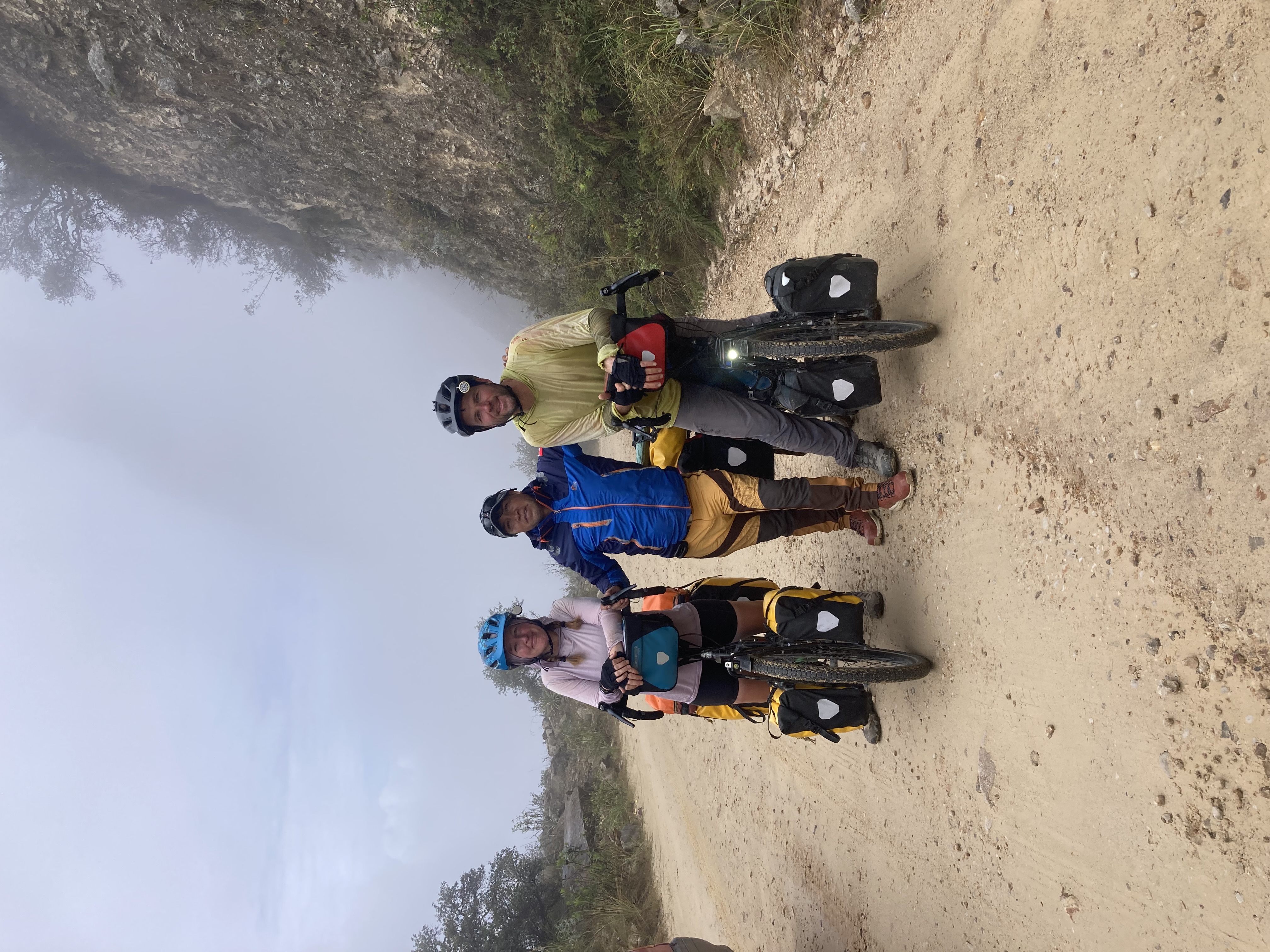 Can you find Patricia in this image? The 19km downhill (almost 12 miles) took us about 2 hours because of the challenging road conditions and rain. In this image you can see many water filled potholes.