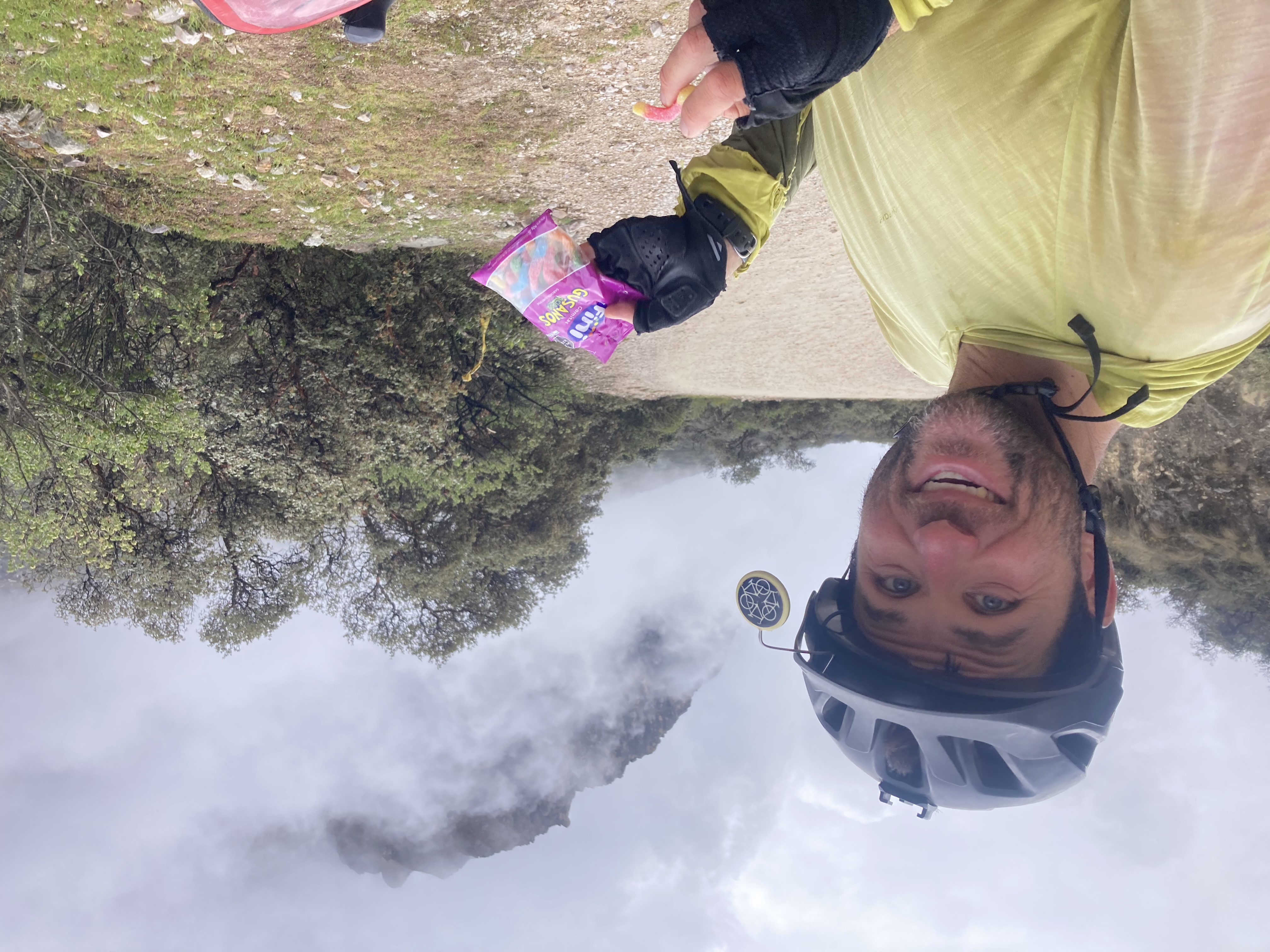Dustin has another gummy worm for climbing energy.