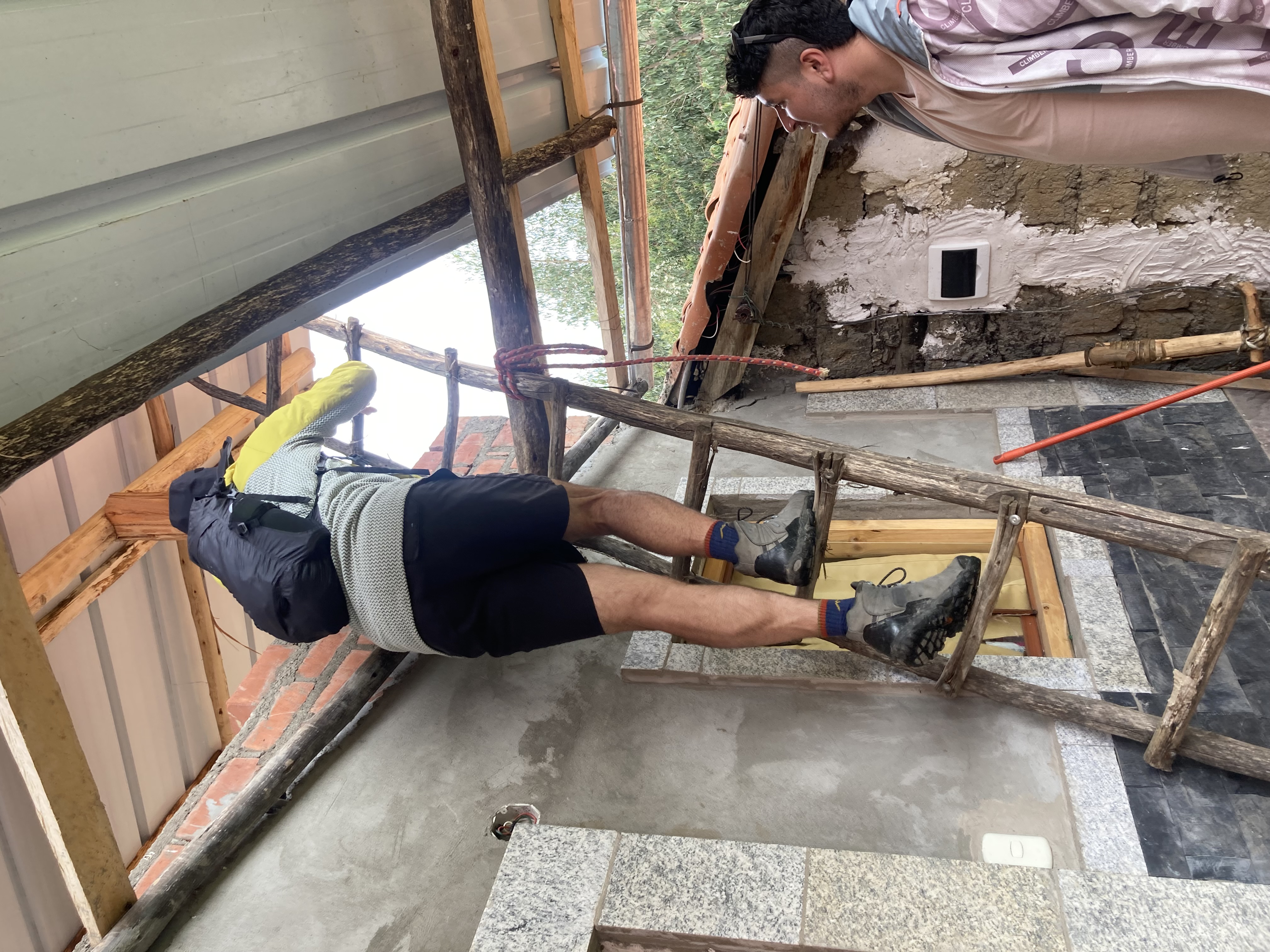 We got to see the building they are currently restoring to make more “tourista” rental rooms – here Dustin climbs up to see the new taraza & view of the mountains.