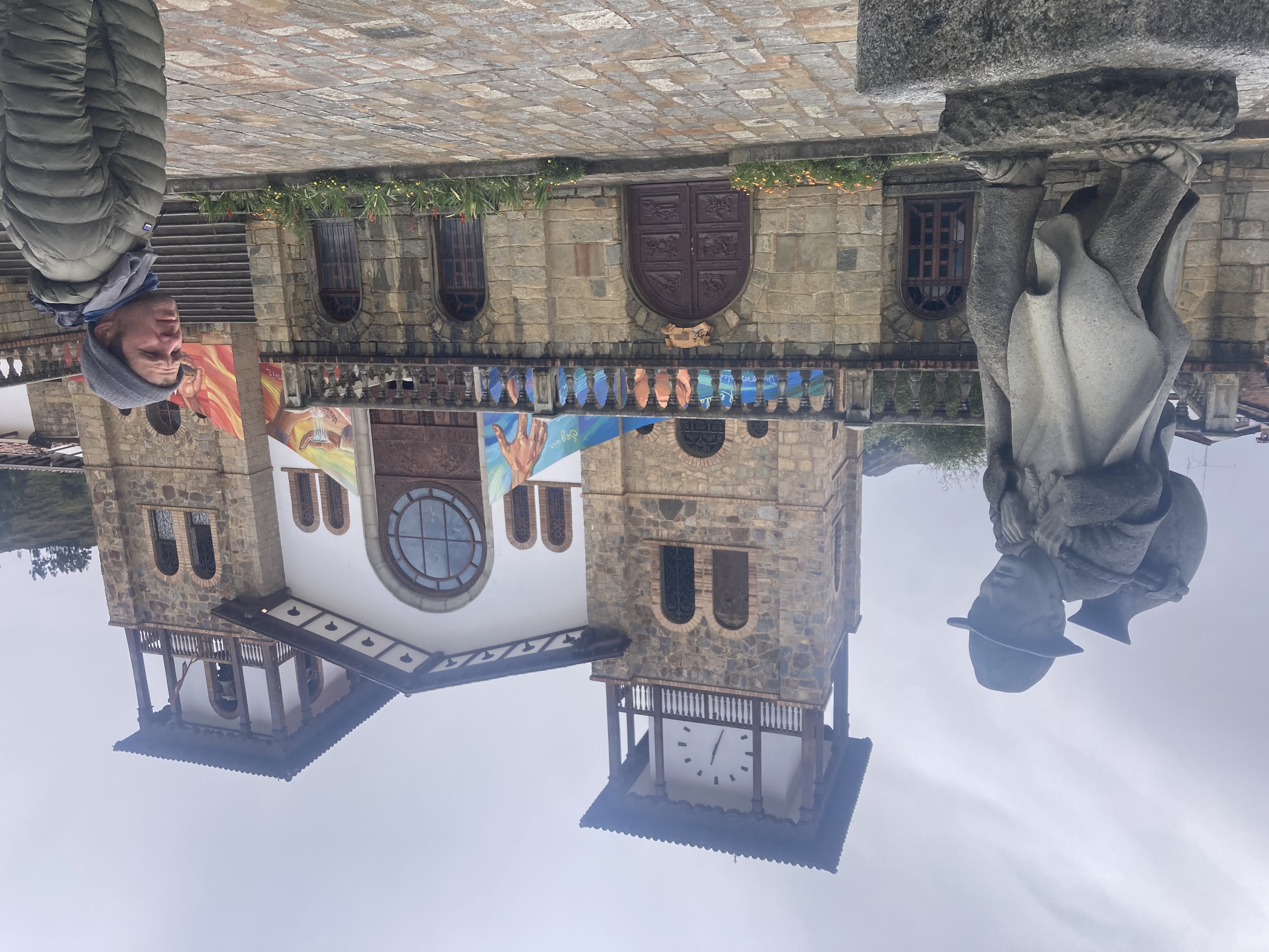 Sebastian is explaining the town layout to Dustin at the base of the bell tower – we had stopped by the local parish to get the key to the bell tower so we could ring the bell.