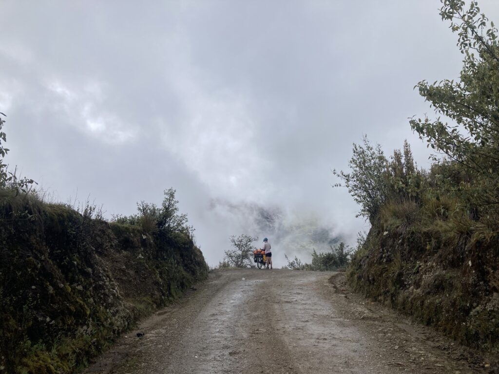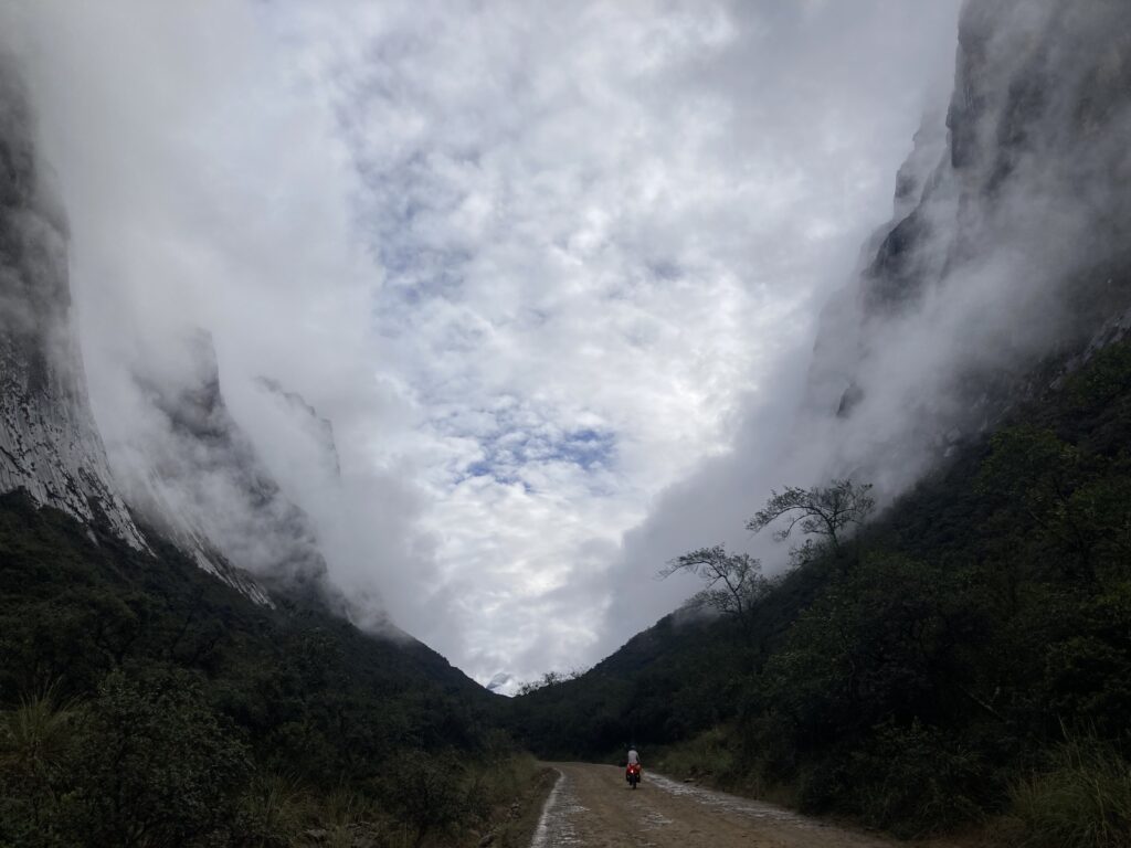 Riding through the canyon shrouded in clouds as we approached the two high altitude lakes in Huascaran National Park.