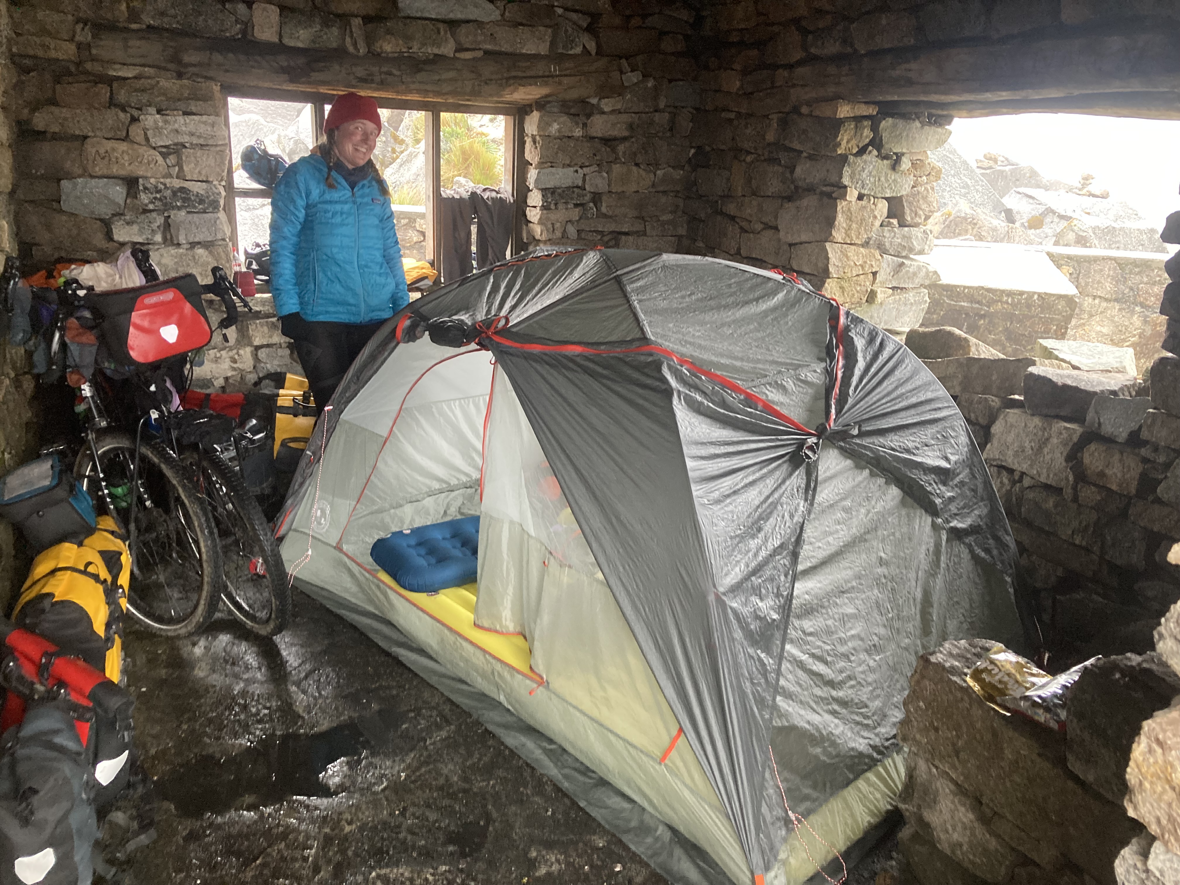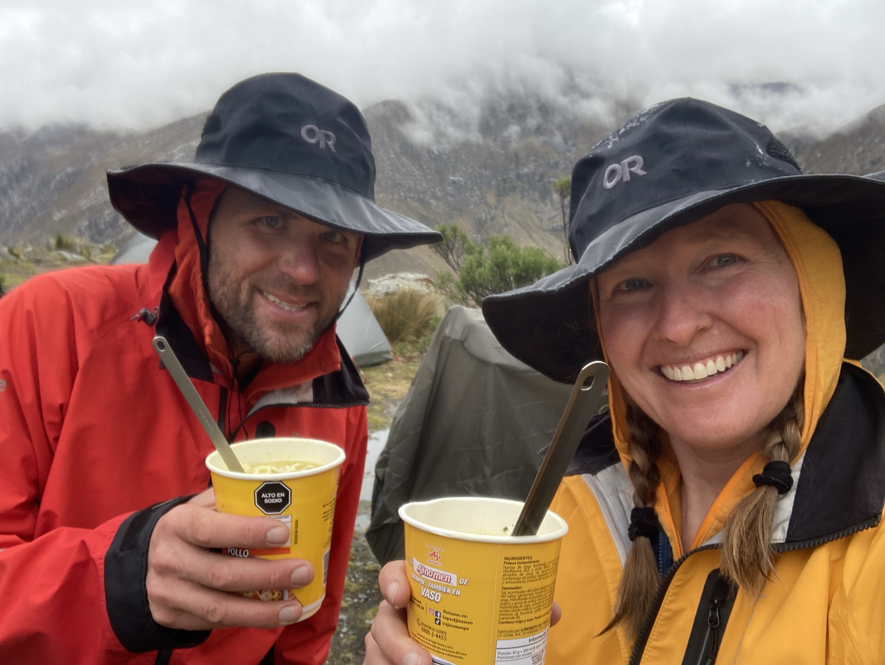 No pictures of the tough times…too focused on getting safe, dry & warm. Once we had camp set and a hot cup of noodles (with peanut butter for extra energy) we snapped a selfie.