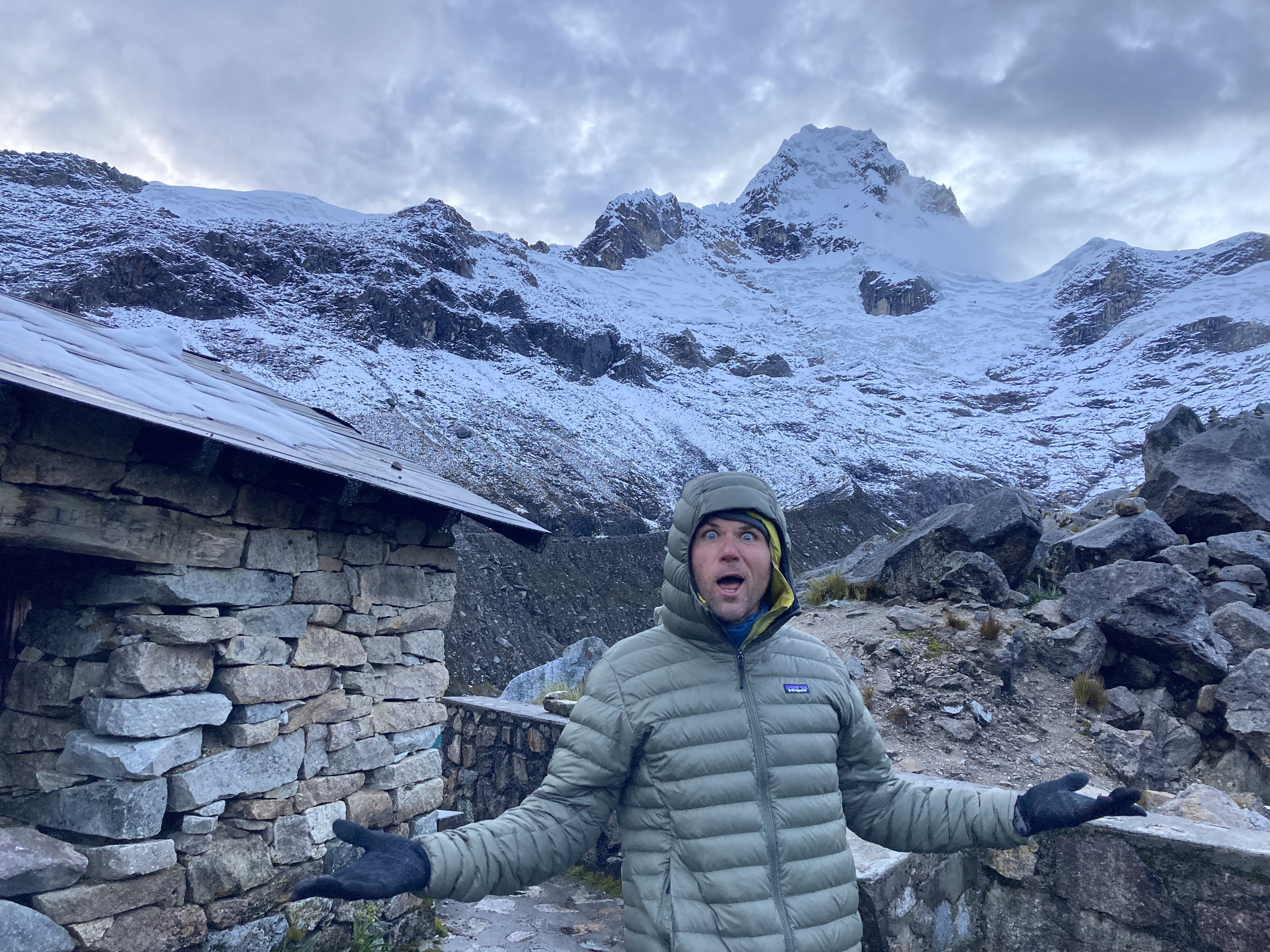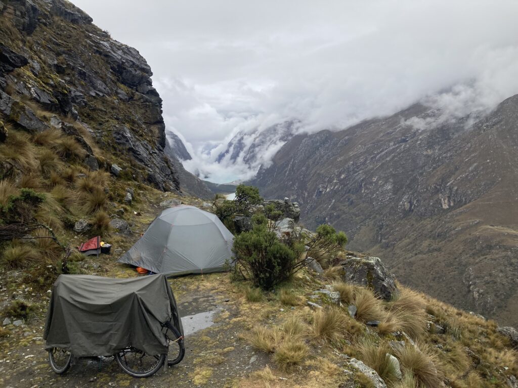 All packed up the next morning – one last look at the cloud-shrouded Cordillera Blanca mountains