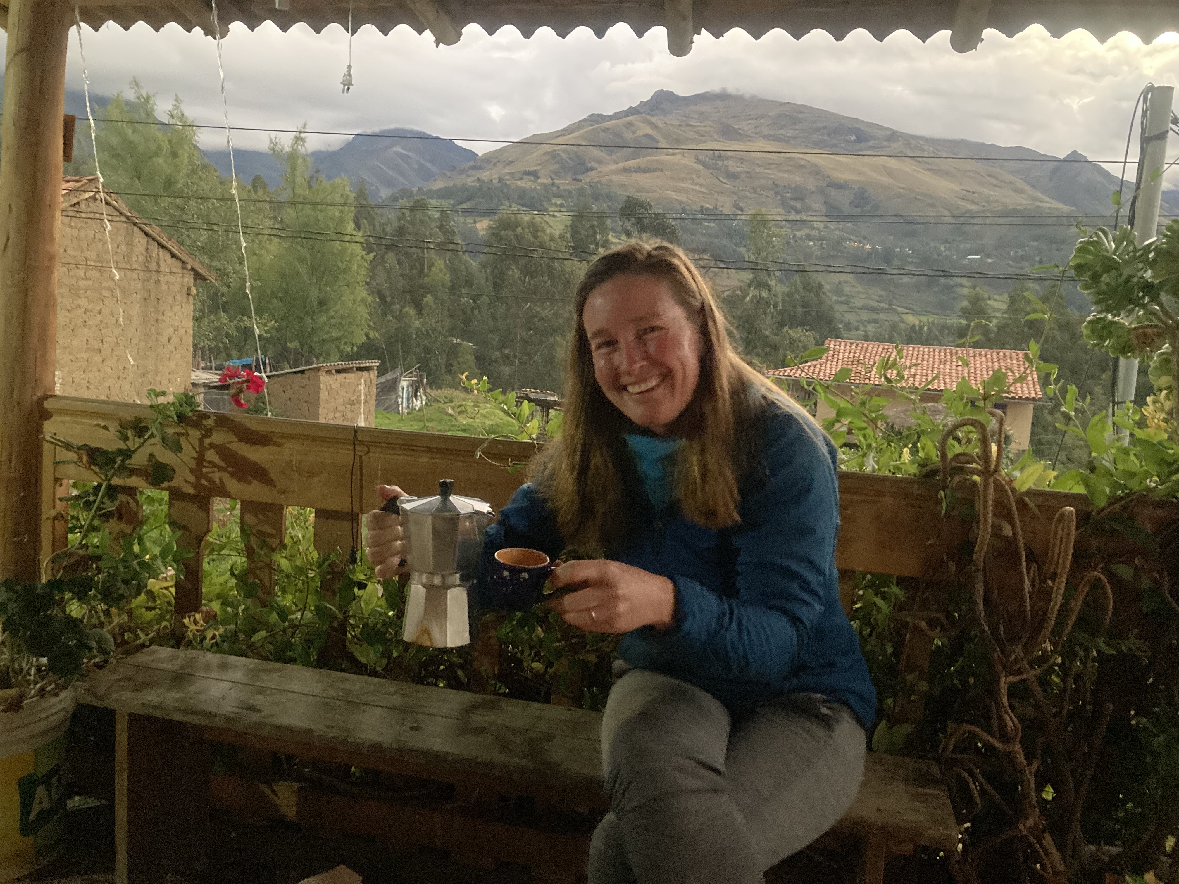 We enjoyed coffee on the taraza with Sebastian & Gloria on our first afternoon in Yanama. The coffee is served similar to expresso but we learned the next morning you can also have “cafe con aqua” (coffee with hot water)
