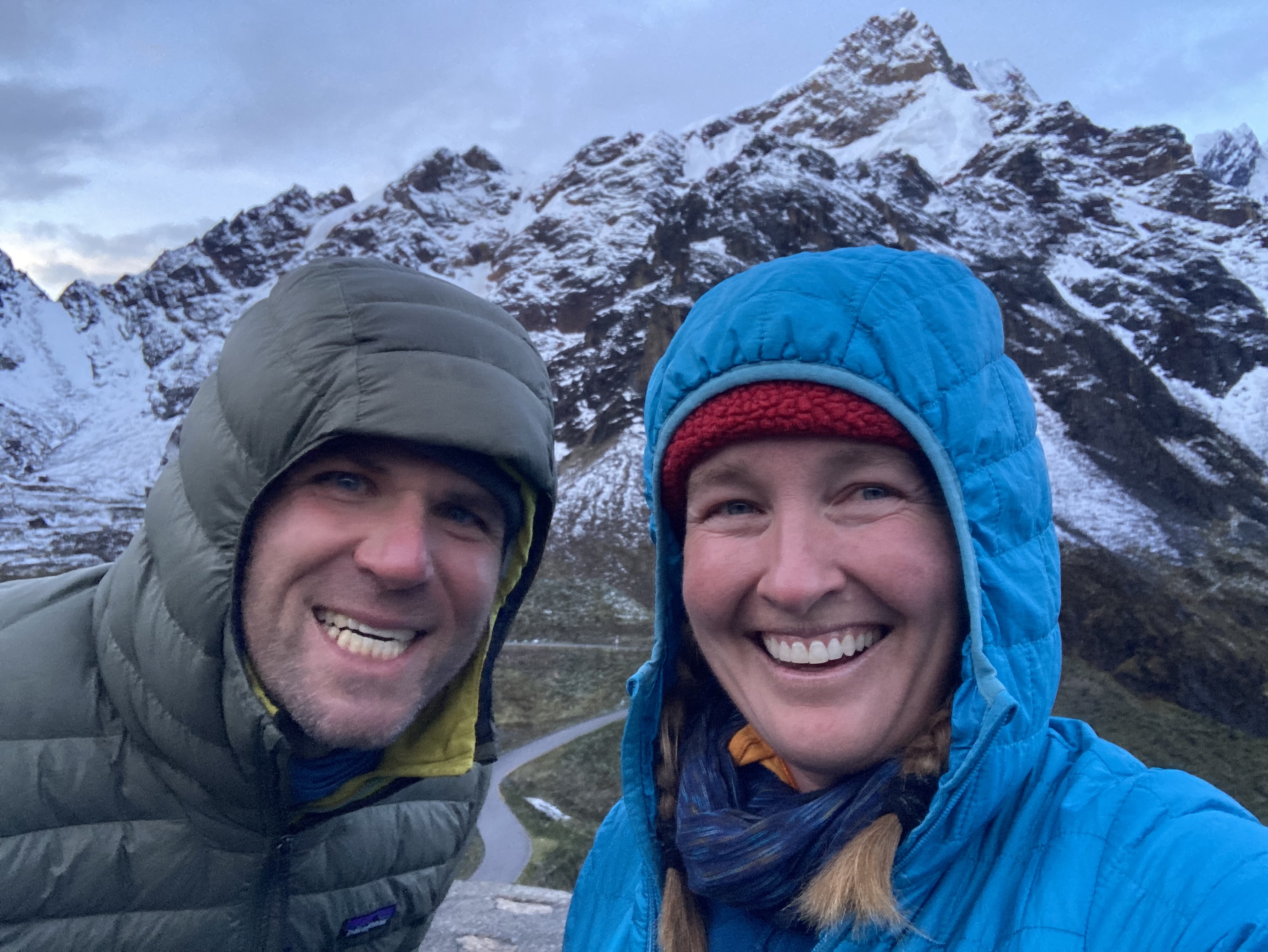 Rugging up at the pass (15,400 feet or 4,700 meters) for the downhill. The weather was deteriorating so we expected a chilly ride down.